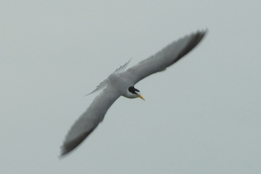 コアジサシとの主な相違点は、少し小形で足も短くて汚黄色。嘴先端の黒い部分が非常に小さくて、額の白い部分が狭い。上尾筒が