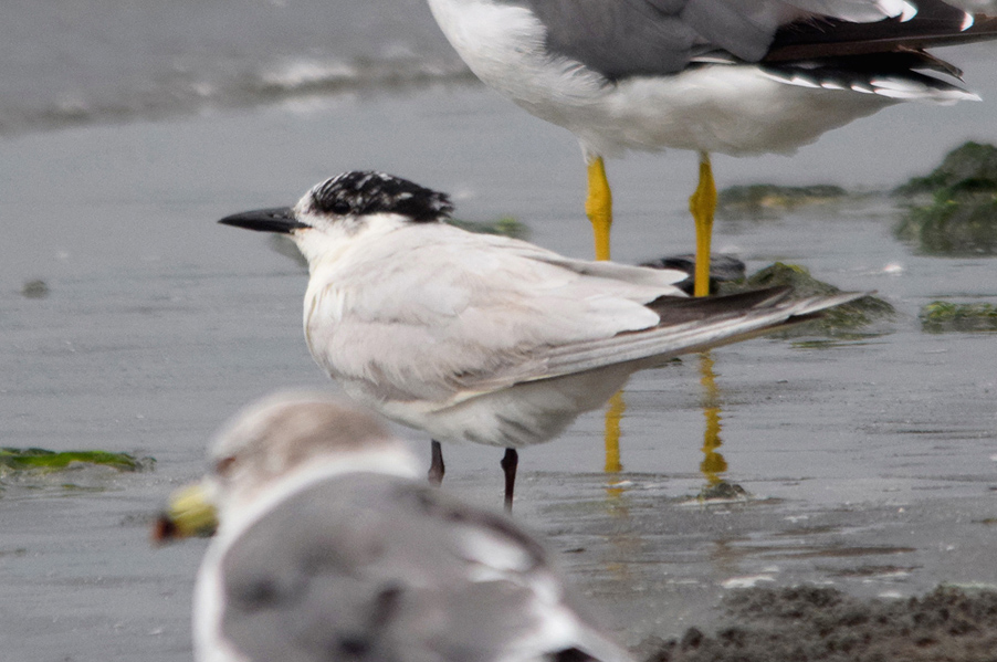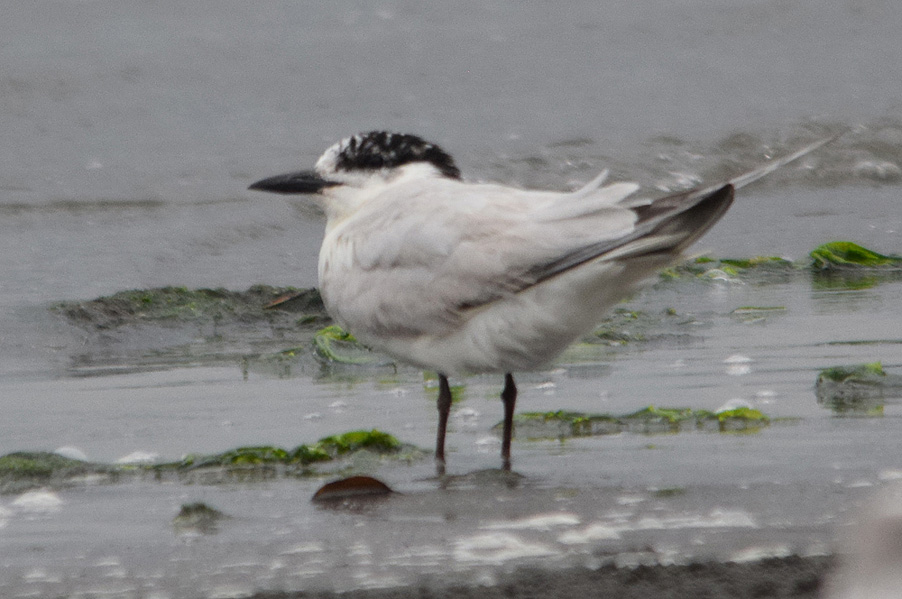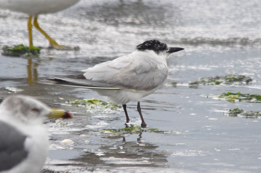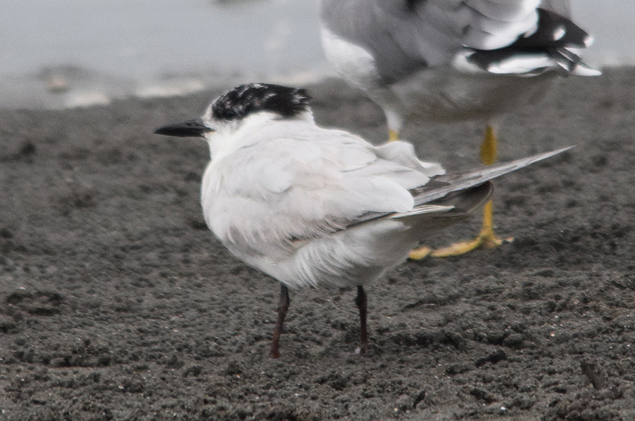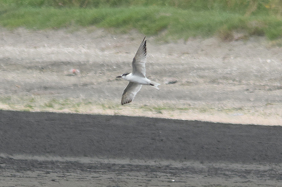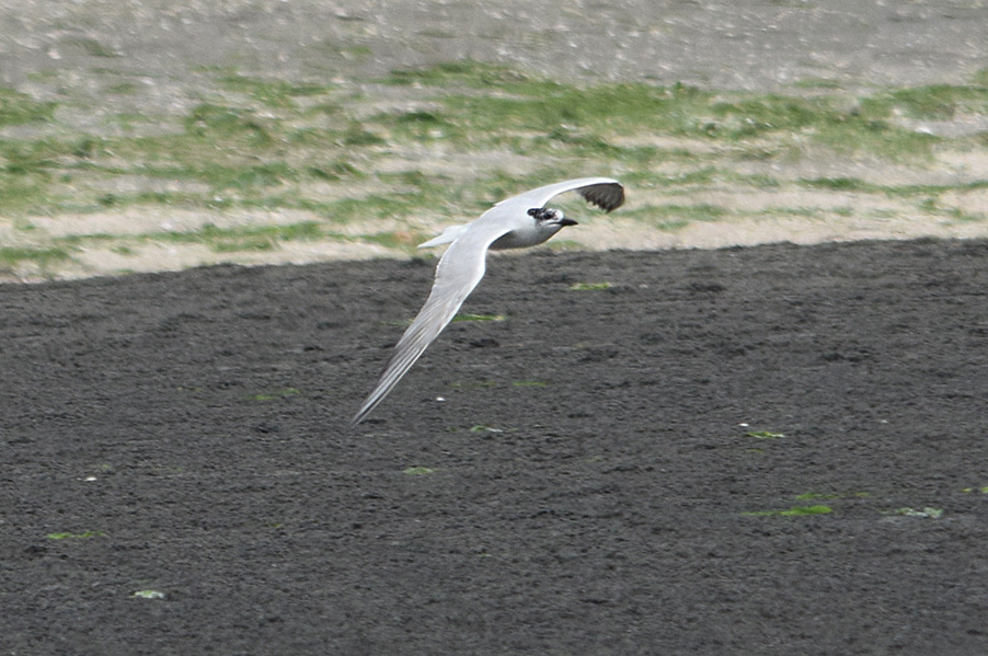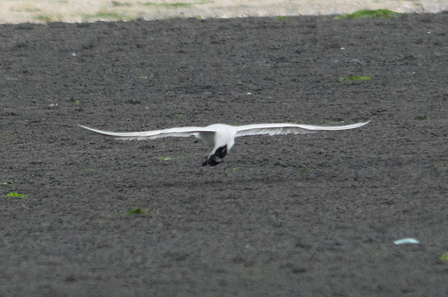 類 似 種:シロアジサシは小さくて嘴が細い。アジサシの夏羽では色彩が似ているが、嘴は細くて足は短め、翼の幅は狭い。地上にいる時には