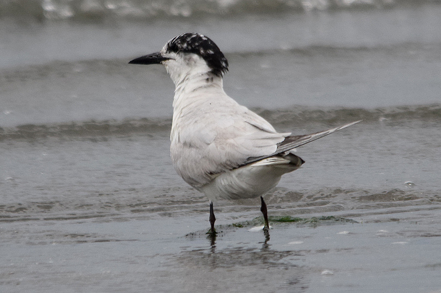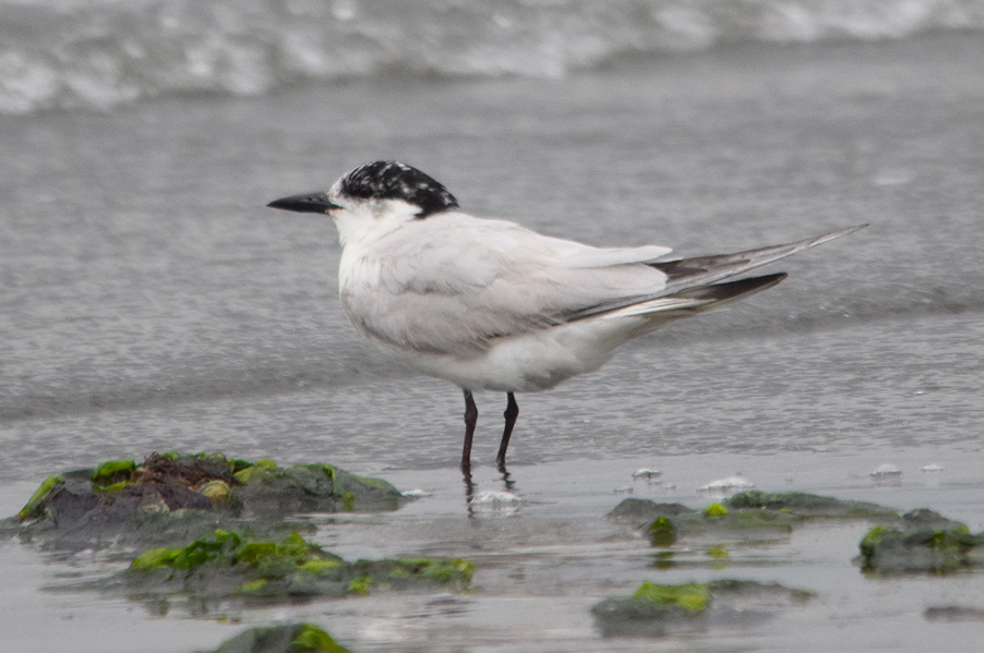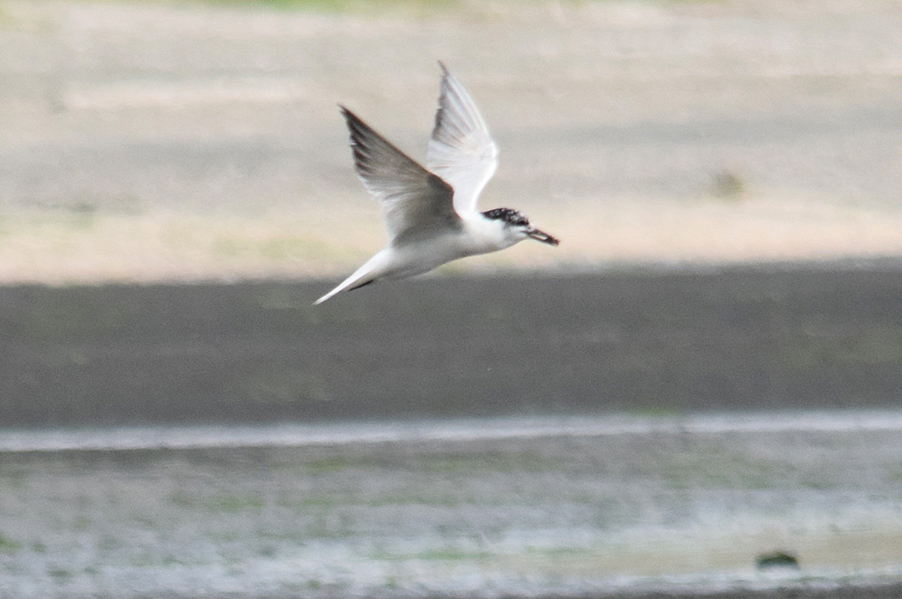 特 徴 :L37.5cm アジサシより少し大きくて、嘴は太い。足は比較的長く、尾は短くて、切れ込みが浅い夏羽では頭上が黒く、背、翼