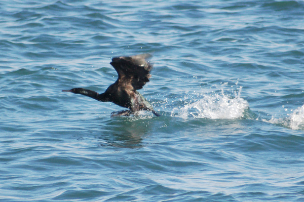 類似種 :チシマウガラスは嘴が太くて白っぽく見え、繁殖期には額も赤い。ウミウは大きくて頚が太く、顔には白色部がある。