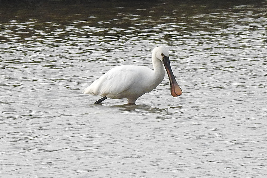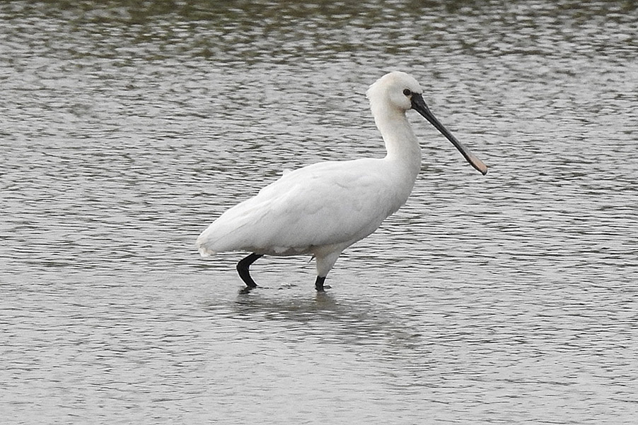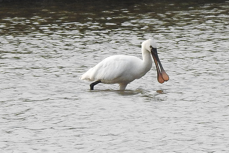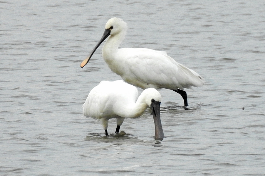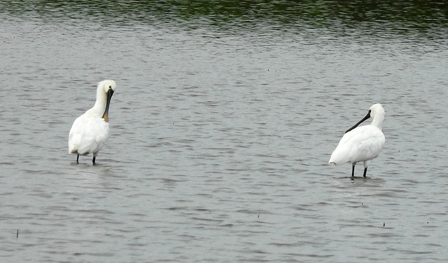 クロツラヘラサギ(手前)と異種間のペアとなっているようです。 2016/08/14 MFにて