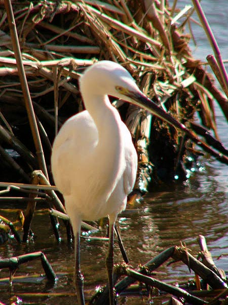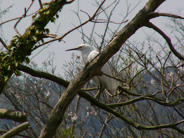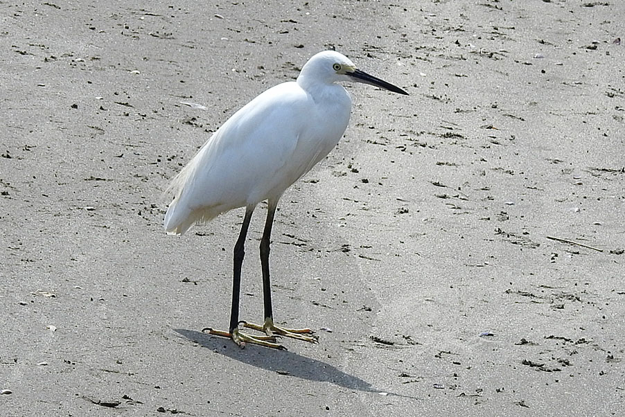 特 徴 :L61cm 全身が白くて嘴は長くて黒く、足も黒いが足指が黄色い。夏羽では後頭から2本の長い関羽が出、背に先がカールした飾