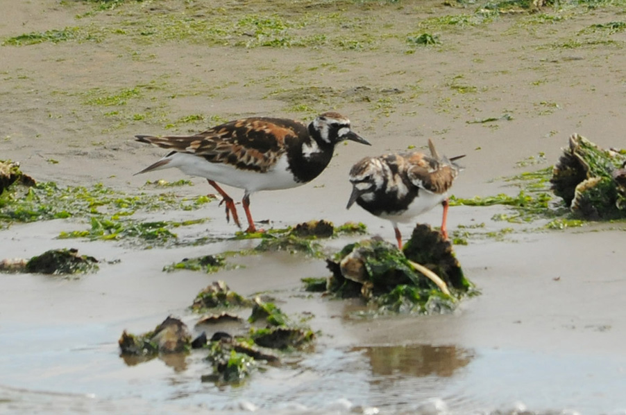 赤褐色はなくなって白と黒の斑になり、足は暗赤色。幼鳥は冬羽に似ているが、肩羽や雨覆の羽縁の白が明瞭。