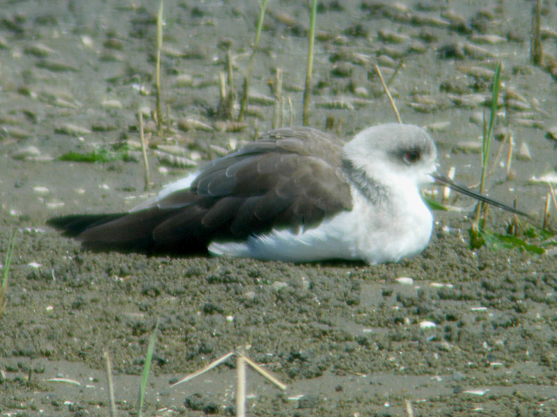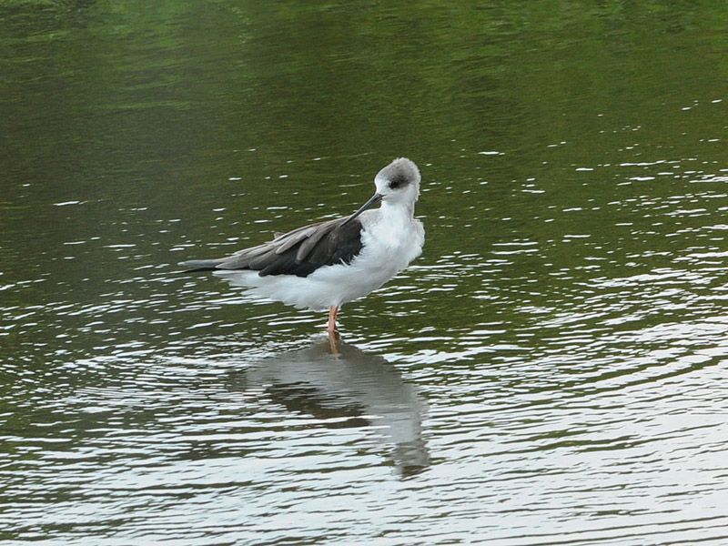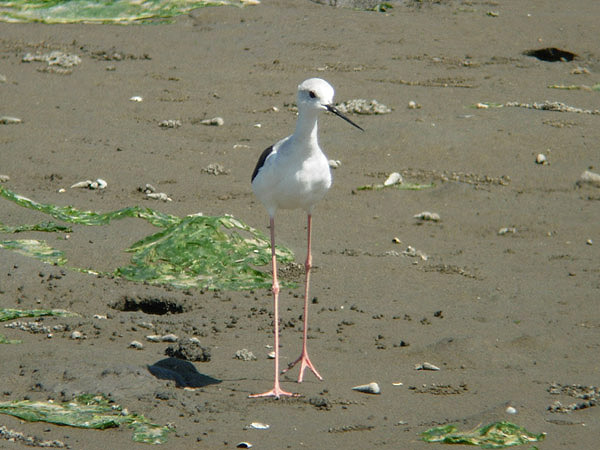 特 徴 :L32cm 嘴はまっすぐで、長くて細い。足は非常に長い。雄の夏羽では頭上から後頸は黒く、緑色光沢のある黒で、残りは白い。