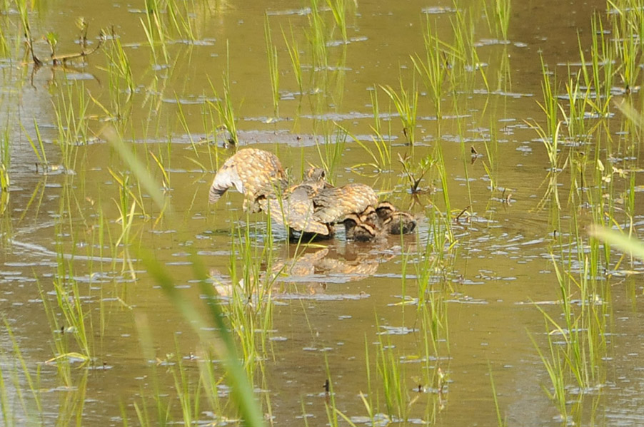 習 性 :福島県以西の本州、四国、九州で繁殖し、留鳥。水田、蓮田、湿地等にすみ、動作は不活発。飛翔速度も遅く、足をたらして低く飛