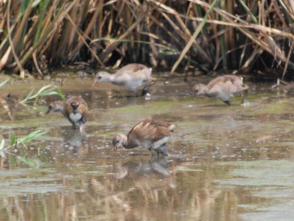 あるがオオバンのように広い水面には出ない。草陰や水田で餌をとることも多い。水上では尾を上げた姿勢をとり、くびを前後に