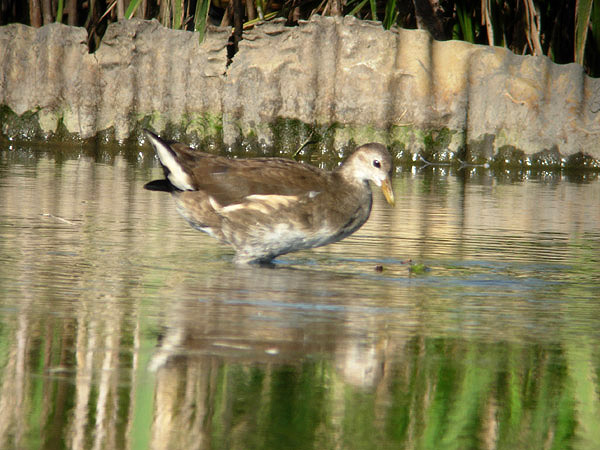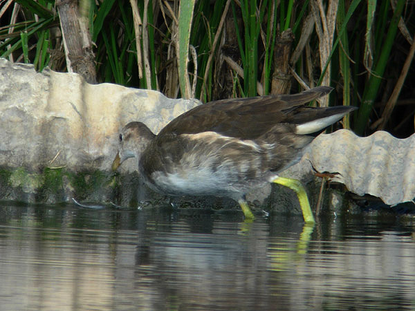 下尾筒に白色斑は無く、黒い縦斑や横斑がある。ツルクイナの雄の夏羽は、脇や下尾筒に明瞭な白色が無い。