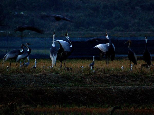 当日ナベヅルは5,000羽以上、マナヅルは150羽以上が飛来していたようです。他にはカナダヅルも入って いたようですが、確認することは出来ませんでした。